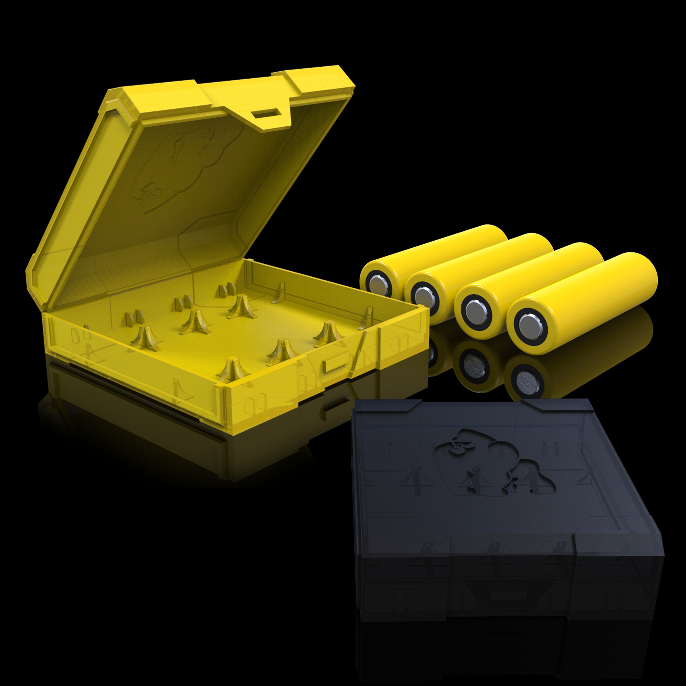 CHUBBY GORILLA TRANSPARENT BLACK DUAL\QUAD 18650 and SOLID YELLOW DUAL\QUAD 18650 SIGNATURE BATTERY CASES